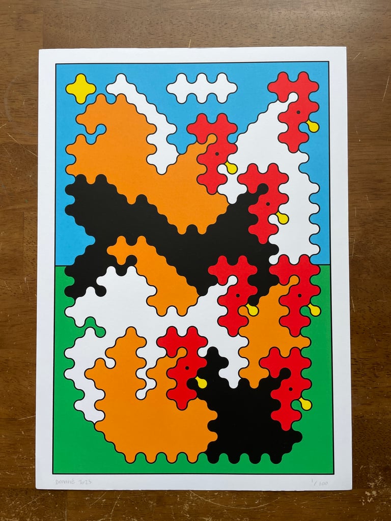 7 Chickens 6 colour screen print on 300gsm paper stock.